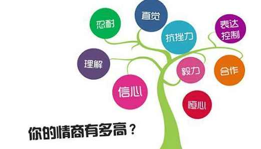 美国心理学家认为:在人的成功的诸多主观上的因素里面,智商(IQ)因素大约占20%,而情商(EQ)则占80%左右。情商包括以下几个方面的内容:一是认识自身的情绪。因为只有认识自己,才能成为自己生活的主宰。二是能妥善管理自己的情绪。即能调控自己;三是自我激励,它能够使人走出生命中的低潮,重新出发。四是认知他人的情绪。这是与他人正常交往,实现顺利沟通的基础;五是人际关系的管理。即领导和管理能力。